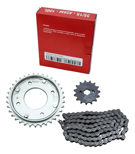 Quantidade da embalagem – 1 Corrente, 1 coroa, 1 pinhão.